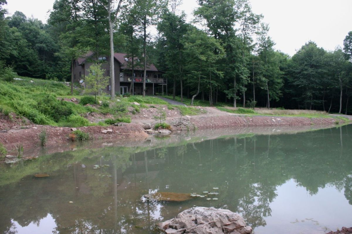 A view across the lodge’s pond.